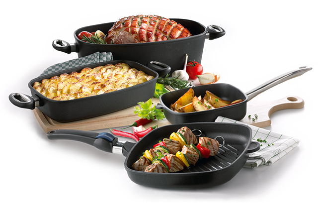 Посуда «AMT GASTROGUSS» - это универсальная литая посуда, мастерство ручного литейного искусства из Германии, где соединяются лучшие технологии прошлого и будущего.
