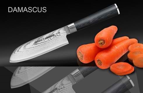 Нож кухонный стальной Сантоку Samura Damascus SD-0092/G-10
